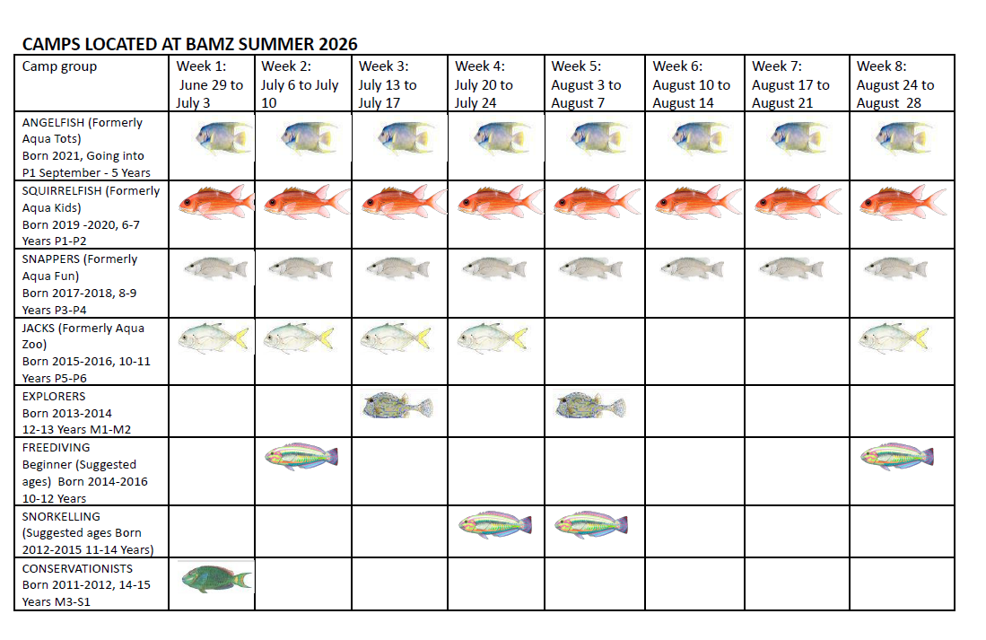 Aqua Camps are for BZS and ACP members' children only, and all are welcome to become members.